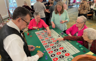 The Springdale Bistro at Lucy Corr was transformed into a lively casino floor on Friday, March 20, as Independent Living residents welcomed guests from the broader community for an evening of games, food and conversation. Roulette wheels spun, cards were dealt and dice rolled as attendees moved between tables for blackjack, craps and Texas Hold ’em. While no money changed hands, winnings were converted into raffle entries, keeping the focus on fun and friendly competition. [...]